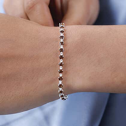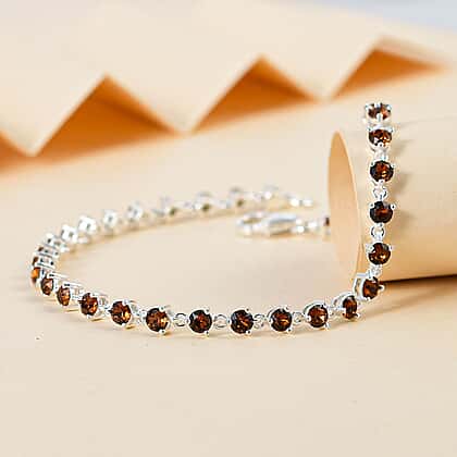 This classy-looking Smokey Topaz Crystal Bracelet (Size - 7.5) in sterling silver is a sight to behold. With its 35 round smoky topaz crystals, each measuring 3mm and faceted for extra shine, this bracelet flaunts a gem weight of 2.940 carats. The sterling silver body adds elegance to the piece, while the lobster clasp ensures a safe fit.