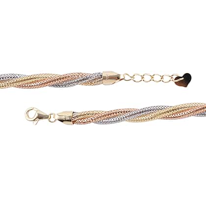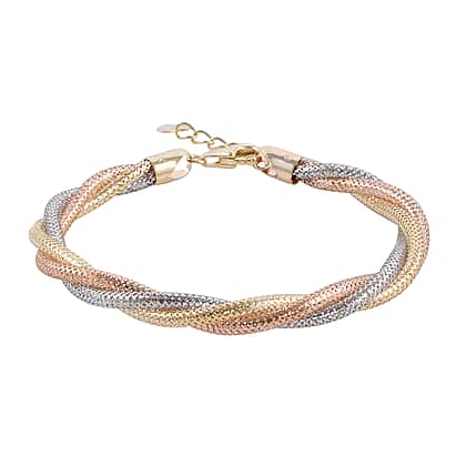 Tricolour Overlapping Mesh Bracelet Size 7.5 in 9K Yellow Gold, Gold Wt. 3.6 Gms