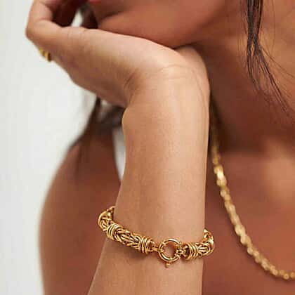 Close Out Deal - 9K Yellow Gold 7.6MM Byzantine Bracelet with Senorita Clasp 7.5 Inch
