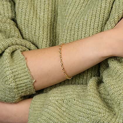 Among the bestsellers in gold chains, the rolo design is replicated to create a stylish gold oval belcher bracelet that is an everyday accessory. Made in 1.7 grams of 9K yellow gold, the size 7.5 bracelet is finished with a bright polish that elevates its element of luxury. The lightweight bracelet can be worn by itself, or paired with TJC’s designer bracelets or gold bangles.