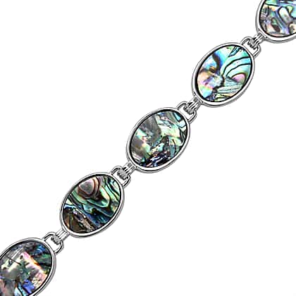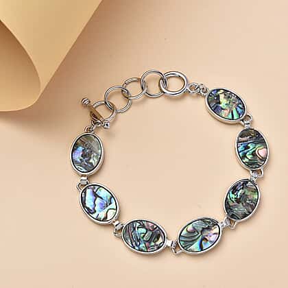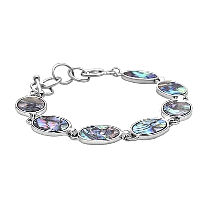The striking patterns of Abalone Shells and the lustrous alloy lend this bracelet a stunning look. The Abalone Shells look stylish with their colourful silhouettes highlighted in a bezel setting. The bracelet can be extended with a T-Bar clasp for a versatile fit.