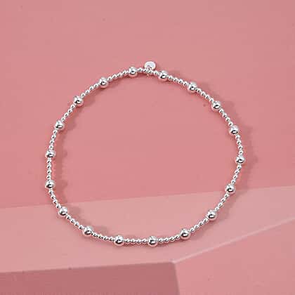 Close Out Deal - Sterling Silver Stretchable Beaded Bracelet (Size - 7)