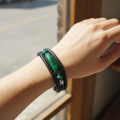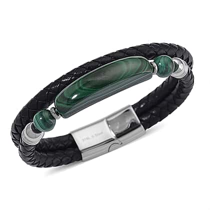 Close Out Deal- Natural Malachite Bracelet (Size 7) Pure Natural Leather Standard 77.00 Ct.