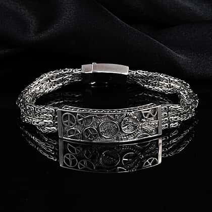 Inspired by the architectural motif of the temple in Bali, this Borobudur chain bracelet adds an essence of aesthetic appearance to your jewellery collection. The motif symbolises a schematic representation of the cosmos and its connection with the universe. The metal strands in this handmade 3-row Borobudur bracelet are created with detailed carving. The metal strands are melted, pressed, and laid out in concentric circles, then braided manually with thick metal strands, featuring the detailed design of the Borobudur chain. This chain bracelet is impeccably designed in sterling silver, featuring an intricate design. Bali legacy is a collection that offers distinctive designs inspired by the exotic culture of Balinese and Javanese people.