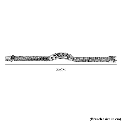 Closeout Deal- Royal Bali Handmade 3 Row Borobudur Bracelet in Sterling Silver (Size - 7.5), Silver Wt. 43 Gms