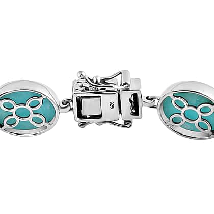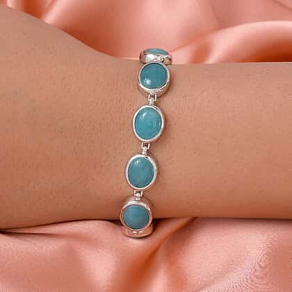 The all-new mesmerising AAA Brazilian amazonite bracelet is all you need this season to stand out from the crowd. Known to be one of nature’s most ancient stones, the turquoise hue of this gem is said to soothe and calm the soul and senses. The unique bracelet is set on a 925 sterling silver with a platinum overlay to add extra sparkle and shimmer to the bracelet. The alluring gems are bezel set in the frame and are secured using an open box clasp to comfortably fasten the bracelet on your wrist. Grace your outfit by wearing this exquisite piece of jewel in your hand.