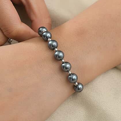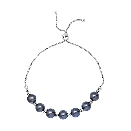 Created Tahitian Pearl Adjustable Bracelet (Size - 10.5) in Rhodium Overlay Sterling Silver 26.00 Ct.