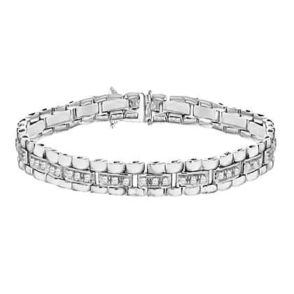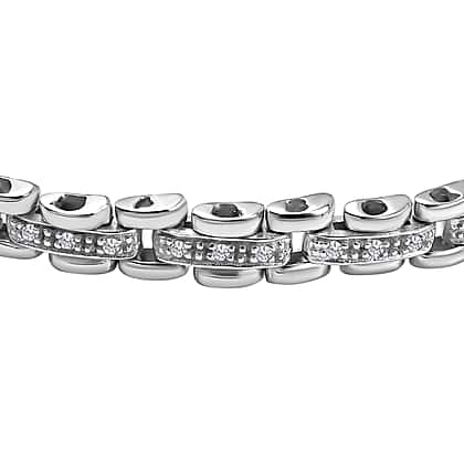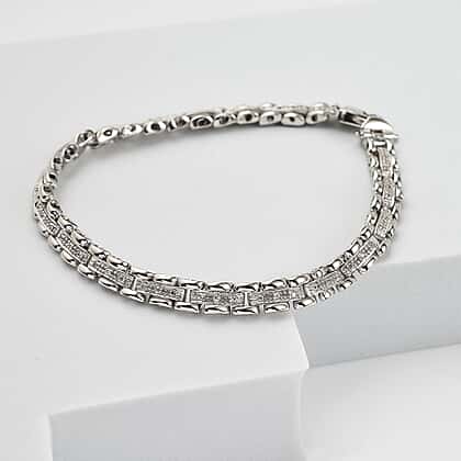 Cubic Zirconia Sterling Silver Stampato Bracelet (Size - 8), Silver Wt. 16.8 Gms