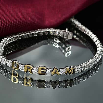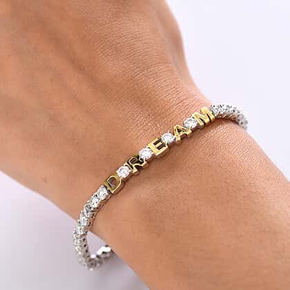 The D’Joy Moissanite Cluster Bracelet in sterling silver is the embodiment of modern luxe and joyful affirmation. Each radiant moissanite stone captures light with dazzling brilliance, while the bracelet’s sleek silver silhouette is punctuated by bold gold-tone letters spelling 'DREAM' a wearable mantra for those who turn aspirations into style. Inspired by the energy of sparkling tennis bracelets and the power of personal narrative, this piece is ideal for those who cherish meaningful, elevated jewelry with a fresh edge. Stack with sleek cuffs or pair solo for a touch of everyday glam; the bracelet’s message lends confidence and clarity to any ensemble.