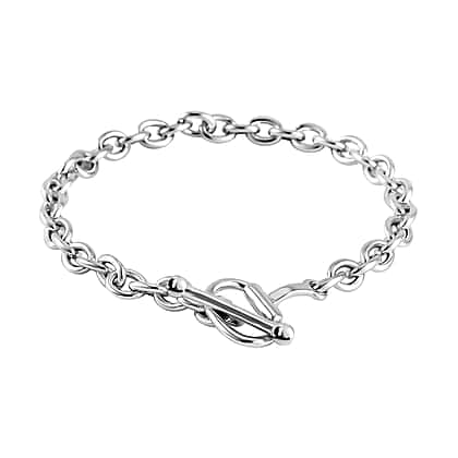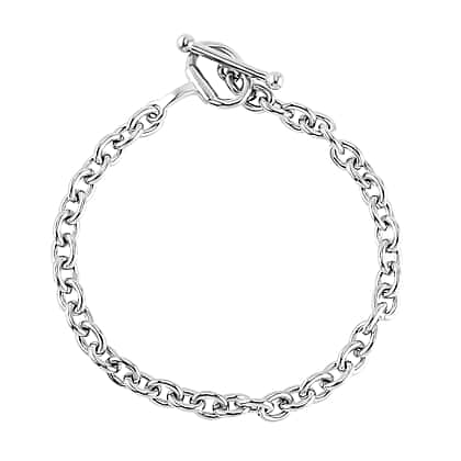 Designer Closeout Deal- Snaffle Link Clasp Rhodium Overlay Sterling Silver Cable Link Bracelet (Size - 7.5), Silver Wt. 13.4 Gms