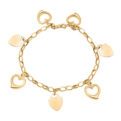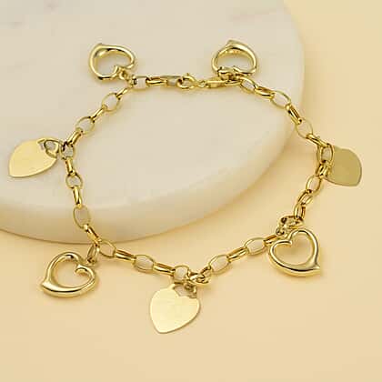Designer Inspired - 9K Yellow Gold Heart Charm Bracelet (Size - 7.5), Gold Wt. 4.70 Gms
