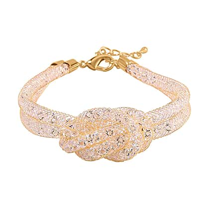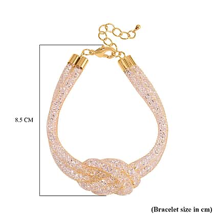 If you are looking to set off a ripple effect in an evening gala, trust this White Austrian Crystal Knot Bracelet to bring out your most fashionable side for others to see. The Size - 7.5 bracelet comes with a 2 inch extender that allows it to be shared or gifted. The brass bracelet is carpeted with white crystals in gold colour finish. This universal fashion accessory offers unlimited styling options catering to diverse preferences of women of all ages.