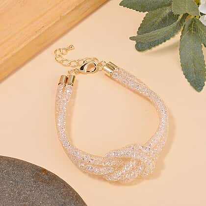 Designer Inspired - White Austrian Crystal Knot Bracelet (Size - 7.5-2 Inch Ext.)