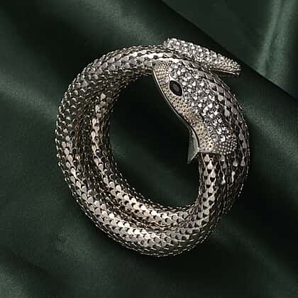 - DESIGN: Using White Austrian crystal and simulated black spinel, this bracelet features a snake design that represents fertility, rebirth, renewal, and even immortality