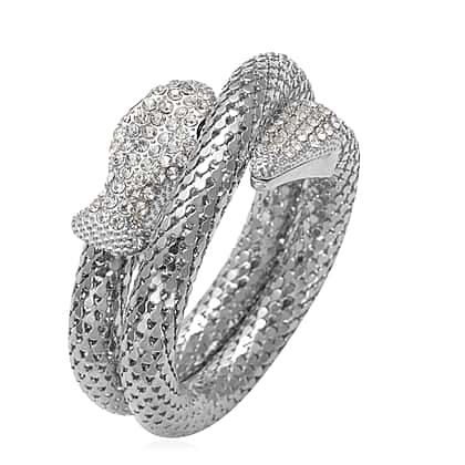 Designer Inspired Austrian Crystal Snake Bracelet (Size 7) in Silver Tone