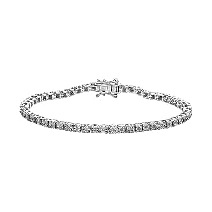Diamond Tennis Bracelet (Size - 7.5) in Platinum Overlay Sterling Silver 0.25 Ct, Silver Wt. 12.00 Gms