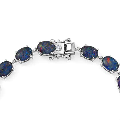 D'Joy - Boulder Opal Triplet & White Zircon Cluster Bracelet (Size - 7) with GB Lock Box in Rhodium Overlay Sterling Silver 12.82 Ct.