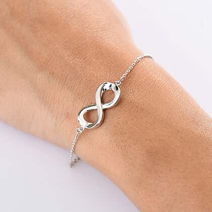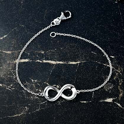 Djoy - Infinity Kont Bracelet (Size - 7.5) with Lobster Clasp in Rhodium Overlay Sterling Silver