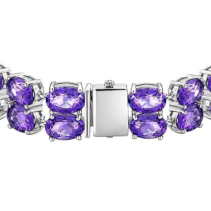 D'Joy AAA Uruguay Amethyst Bracelet (Size - 7) in Rhodium Overlay Sterling Silver 30.43 Ct, Silver Wt.13.80 Gms