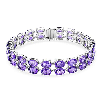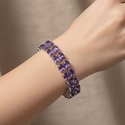 D'Joy AAA Uruguay Amethyst Bracelet (Size - 8) in Rhodium Overlay Sterling Silver 35.00 Ct, Silver Wt.15.87 Gms