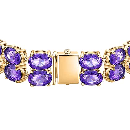 D'Joy AAA Uruguay Amethyst Bracelet (Size - 8) in Yellow Gold Plated Sterling Silver 35.08 Ct, Silver Wt. 15.80 Gms