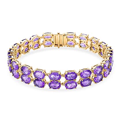 D'Joy AAA Uruguay Amethyst Dual Row Bracelet (Size - 7) in Yellow Gold Plated Sterling Silver 30.43 Ct, Silver Wt. 14.00 Gms