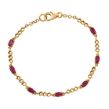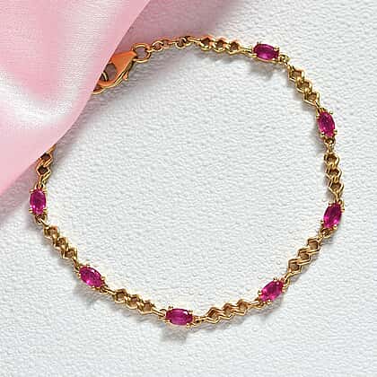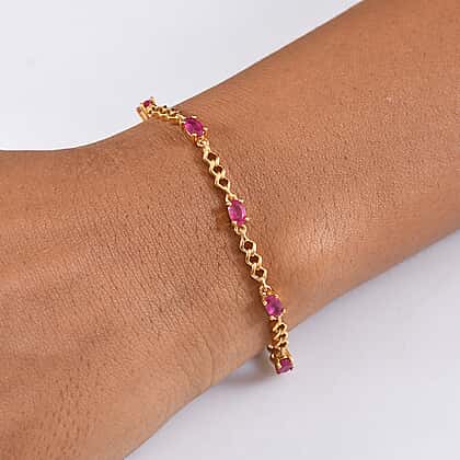 D'joy African Ruby Bracelet (Size - 7) with Lobster Clasp in Yellow Gold Plated Sterling Silver 2.36 Ct, Silver Wt. 5.10 Gms.