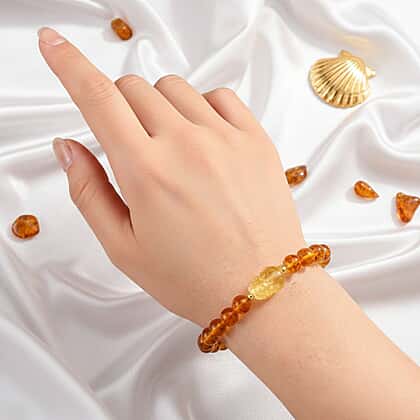 D'Joy Amber Beads Bracelet (Size 7 to 7.5 Stretchable) in Yellow Gold Plated Sterling Silver 28.00 Ct.