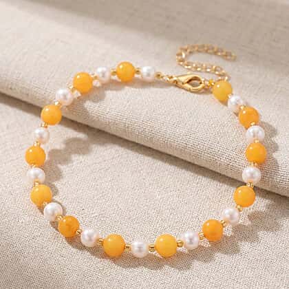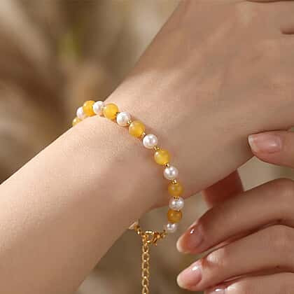 D'Joy Amber, White Fresh Water Pearl Beads Bracelet Sterling Silver 15.000 Ct.