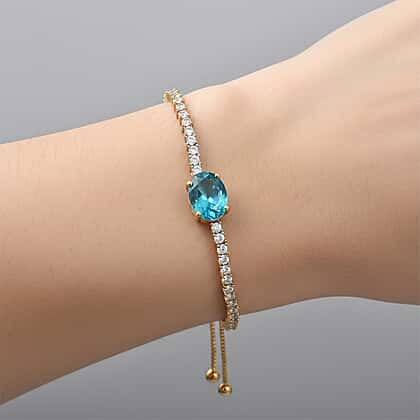 D'Joy Capri Blue Triplet Quartz & White Zircon Adjustable Chain Bracelet (Size - 10.5) in Yellow Gold Plated Sterling Silver 3.94 Ct.