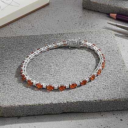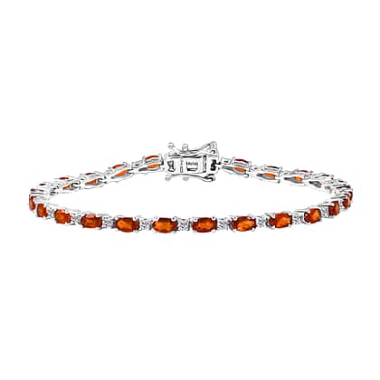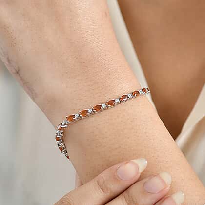 D'Joy Ceylon Hessonite Garnet & White Zircon Bracelet (Size 7.5) in Rhodium Overlay Sterling Silver 8.05 Ct, Silver Wt. 8.65 Gms.