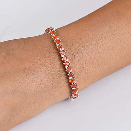 There’s an undeniable warmth to this 7.5-inch crimson fire opal linking bracelet. Each vivid fire opal gleams with deep orange-red tones, symbolising energy and passion, while the white zircon highlights add a soft, sparkling contrast. The sleek linking design flows effortlessly around the wrist, creating a refined yet lively finish. Set in rhodium-plated 925 sterling silver that’s hypoallergenic, resistant to tarnish, and comfortable on sensitive skin, this bracelet pairs craftsmanship with confidence. A secure lock box clasp keeps it perfectly in place for both daily wear and special moments.