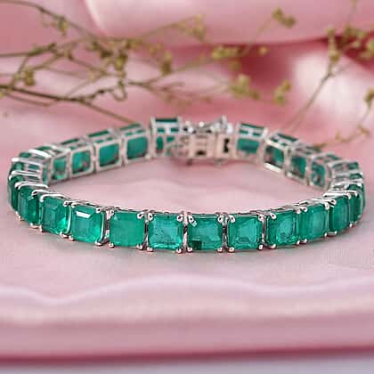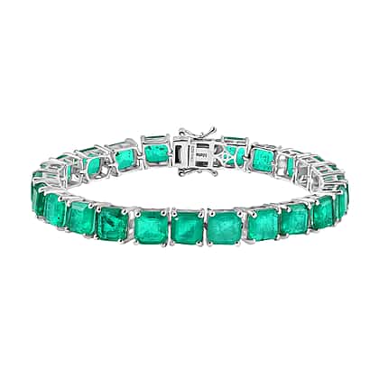 D'Joy Emeraldine Triplet Quartz Line Bracelet (Size - 7) with GB Lock Box in Rhodium Overlay Sterling Silver 36.41 Ct, Silver Wt. 14.70 Gms