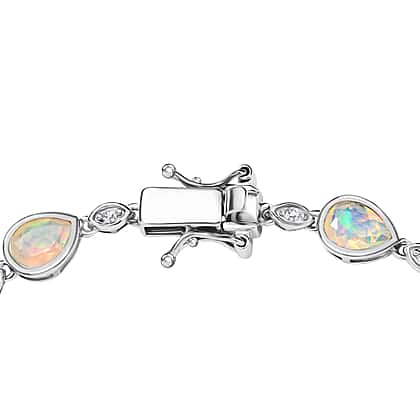 D'Joy Ethiopian Opal & Moissanite Tennis Bracelet 1 Row (Size 7.5) with GB Lock Box in Rhodium Overlay Sterling Silver 6.10 Ct, Silver Wt. 8.74 Gms.