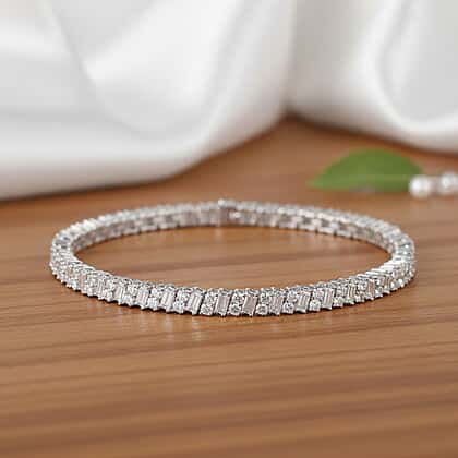 D'Joy Moissanite Tennis Bracelet (Size - 7.5) in Rhodium Overlay Sterling Silver 6.76 Ct., Silver Wt. 11.40 Gms