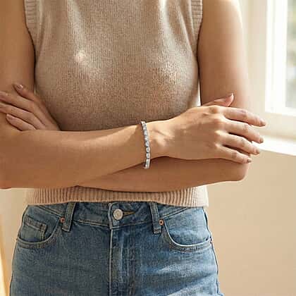 This sparkling moissanite tennis bracelet from D'Joy is designed to feel confident, polished, and quietly powerful on the wrist. This 7.75-inch bracelet features a classic line of precisely set moissanite rounds, symbolising continuity and commitment, with articulated links for fluid movement. Moissanite is prized for exceptional fire and diamond-like sparkle, offering a robust, scratch-resistant alternative to natural diamonds. Crafted in 925 sterling silver with a rhodium overlay, it’s hypoallergenic, tarnish-resistant, and won’t turn green, making it suitable for sensitive skin. A perfect choice to pair with any of your ensembles.