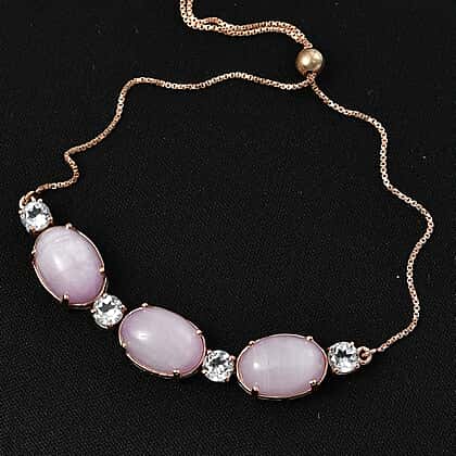 D'Joy Natural Kunzite & Golconda Topaz Station Bracelet (Size - 7.5 Adjustable) in Rose Gold Plated Sterling Silver 22.39 Ct.