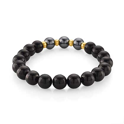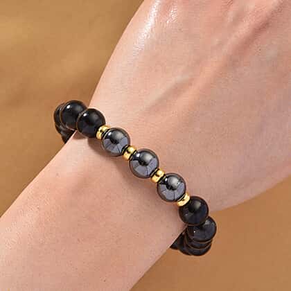 D'joy Natural Shungite & Hematite Bracelet (Size 7.5 Strechable) in Yellow Gold Plating Sterling Silver 140.00 Ct.