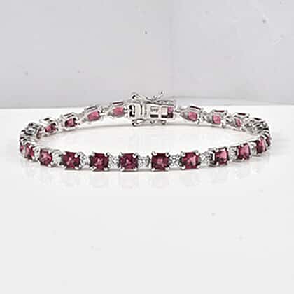 D'Joy Rhodolite Garnet, White Zircon Cluster Bracelet (Size - 7) in Rhodium OverlaySterling Silver, Silver Wt.10 Gms 13.200 Ct.