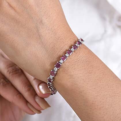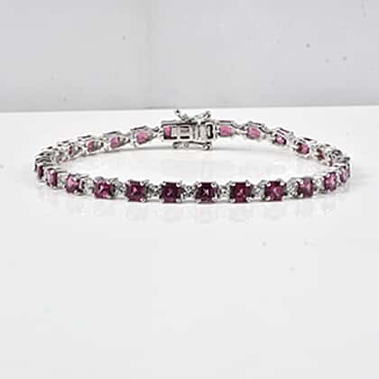D'Joy Rhodolite Garnet, White Zircon Cluster Bracelet (Size - 7.5) in Rhodium OverlaySterling Silver, Silver Wt.10 Gms 13.540 Ct.