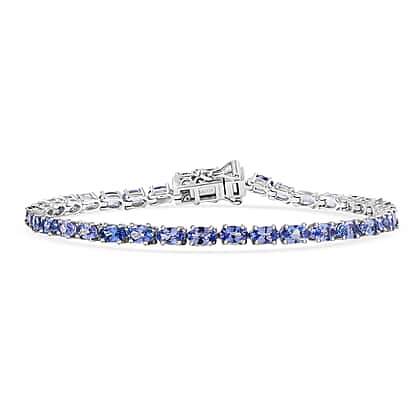 D'joy Tanzanite Tennis Bracelet (Size - 7.5) with GB Lock Box in Rhodium Overlay Sterling Silver 8.29 Ct.