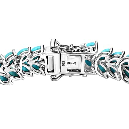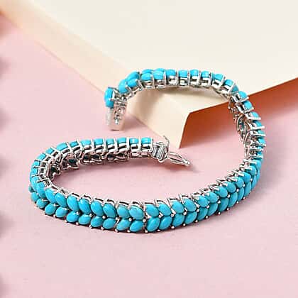 Enjoy the fancy of each eye, looking at the vibrance of this Arizona Sleeping Beauty turquoise bracelet every time you wear it. This bracelet's minimalist design and exuberance will match your unique personality and create a solid personality-uplifting piece of jewellery for you. Crafted using solid 925 sterling silver, it is made with interconnected, adjoining two layers of stations. The cluster of marquise cut turquoise completes the bracelet and gets the blue colour hue, ready to charm each onlooker's eyes. This bracelet is ideal to be worn daily.