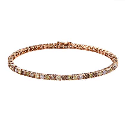 Uplifting your personality and gracing your presence, this natural yellow, pink, champagne and olive-green diamond bracelet will complete you for each gathering. With four tones of naturally occurring precious diamonds, this bracelet announces your rich taste in gemstone jewellery. Crafted using 14K rose gold, this tennis-inspired bracelet has interconnected links which are pronged with different shade diamonds simultaneously. This bracelet has 61 pieces of round single-cut diamonds, providing colourful hues and making it a precious addition to your outfits.