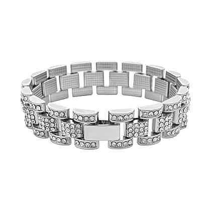 White Austrian Crystal Bracelet (Size - 7.5) in Silver Tone