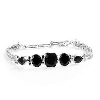 Elite Shungite (Cush 11x9 mm) Bracelet (Size 7.5 to 8.5) in Sterling Silver 7.25 Ct. Silver wt. 13.00 Gms