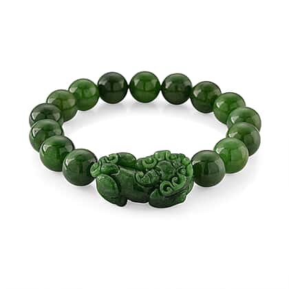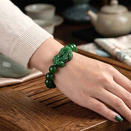 Enhanced Green Jade Beads Curving Cut Adjustable Bracelet (Size - 7.5) 300.00 Ct.