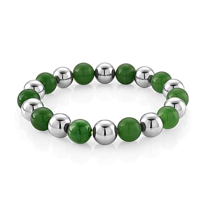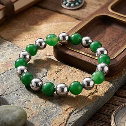 Enhanced Green Jade Beads & Hematite Stretchable Bracelet (Size - 7.5) 200.00 Ct.