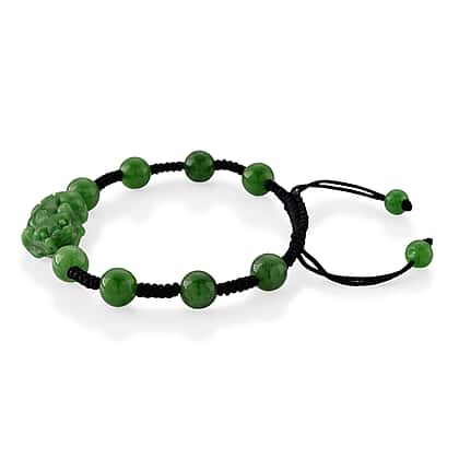 Enhanced Green Jade Carved Pixiu Adjustable Bracelet (Size 6.5-9.5) 35.00 Ct.