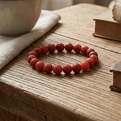 Enhanced Red Jade Beads Stretchable Bracelet (Size 7-7.5) 150.00 Ct.