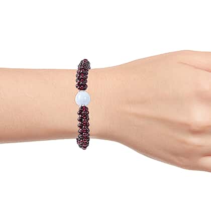 Espirito Santo Aquamarine and Mozambique Garnet Stretchable Beaded Bracelet in Rhodium Plated Sterling Silver 6.5 Inch